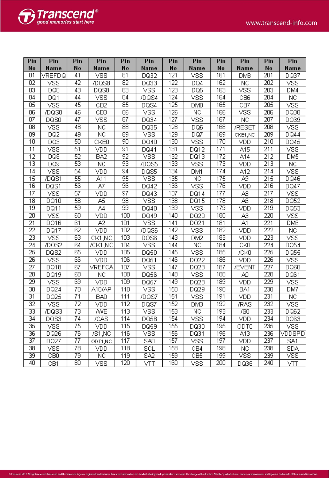Moduły pamięci Transcend TX2000KLU-6GK Arkusz Danych