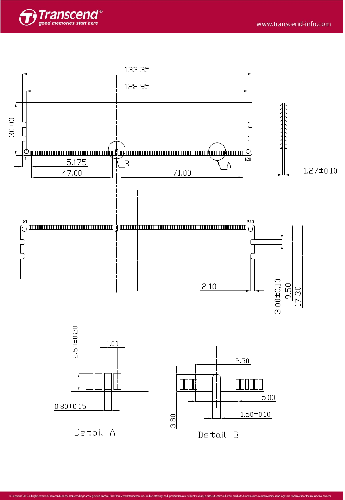 Moduły pamięci Transcend TS128MSQ64V6U-I Arkusz Danych