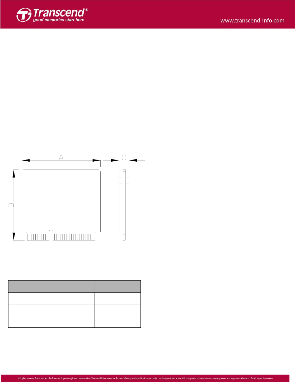 Package Dimensions The figure below illustrates the Transcend MSM360 mSATA mini Solid State Disk. All dimensions are in mm. *Note: Tig